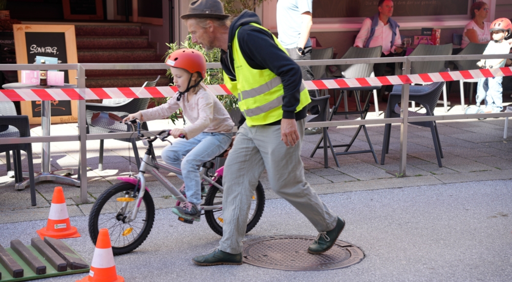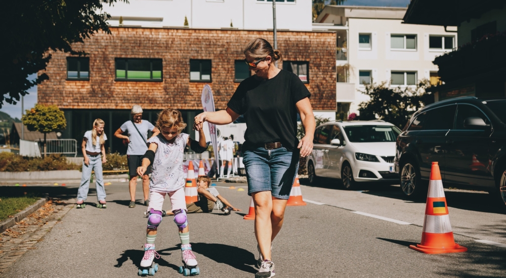 In Kaprun wurde die Wilhelm-Fazokas-Straße im Rahmen der Europäischen Mobilitätswoche einen Nachmittag lang zur autofreien Zone. Das vielfältige Angebot reichte von einem Altersimulationsanzug für eine „Zeitreise ins Alter“ mit dem einem Hören, Sehen und Bewegen vergeht, über den Rollschuhclub Cherry Bombers bis hin zu den Line Dancers mit musikalischer Begleitung. Besonders stark nachgefragt waren das Mio Rad, Fußball-Dart sowie das bunte Kinderprogramm mit Hüpfburg, Bobby-Car-Rennen, alkoholfreier Cocktailbar des JUK Kaprun, Straßenmalerei und Karussell.