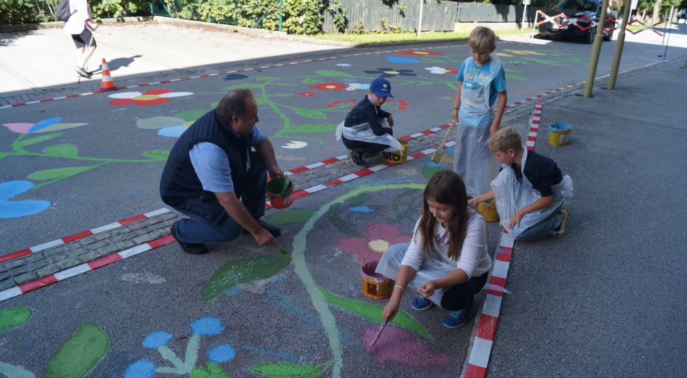 In zahlreichen Orten durften die Jüngsten wieder Straßen, Schulwege und Parkflächen zum Blühen bringen – so zum Beispiel in Bergheim, Bad Gastein, Bad Hofgastein, Seekirchen, Hof bei Salzburg, St. Johann und Tamsweg.