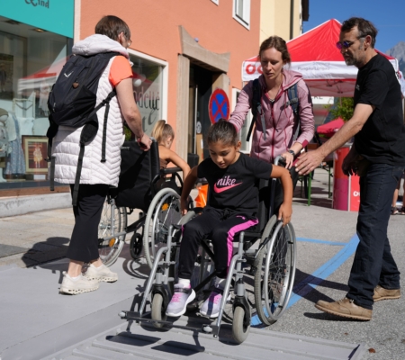 Als besonderes Highlight konnten Besucher:innen beim Autofreien Tag in der Begegnungzone Bischofshofen ihre Umgebung unter geänderten Voraussetzungen im Blindenzelt ertasten und beim Rollstuhlparcours erfahren.