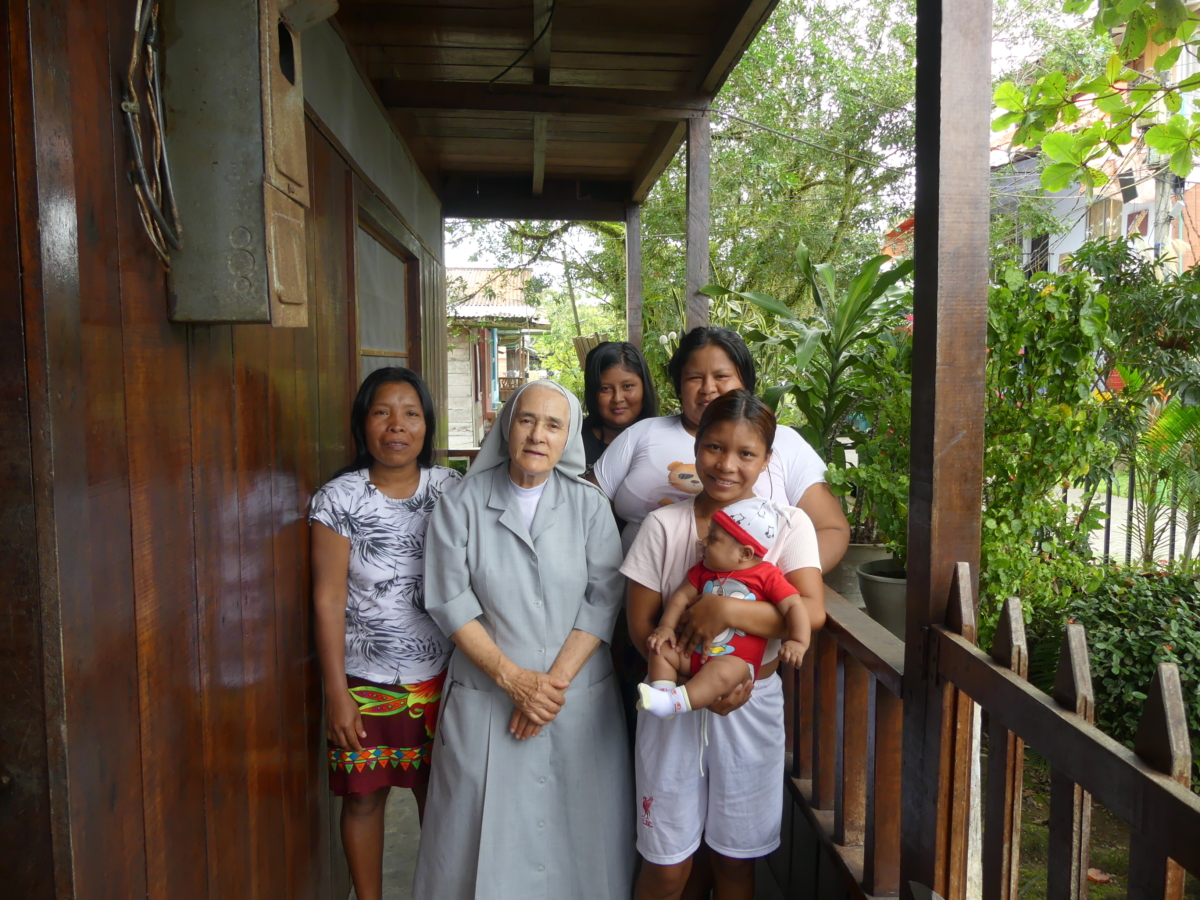 Diese Frauen sind es, die die Chaquiras herstellen. Frauen, die den Regenwald mit ihren Händen flechten. Olga Oka, Mariana Sarco, Eneida Oka Tunay und die Schwester Delfina Buriticá (Von der Kongregation Las Lauritas, die die indigene Schule leiten)