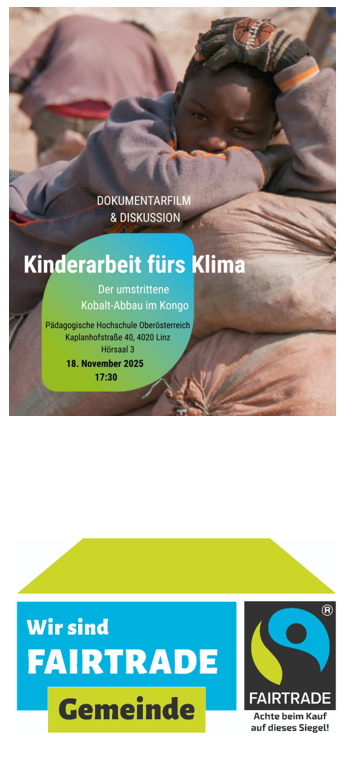 Im Rahmen der Entwicklungszusammenarbeitswoche (EZA-Woche) 2025 vom 17. bis 23. November beteiligt sich das Klimabündnis Oberösterreich gemeinsam mit dem Land Oberösterreich und weiteren Partnerorganisationen an verschiedenen Veranstaltungen. Ziel ist es, die Bedeutung fairer Handelsbeziehungen aufzuzeigen und nachhaltigen Konsum greifbar zu machen.