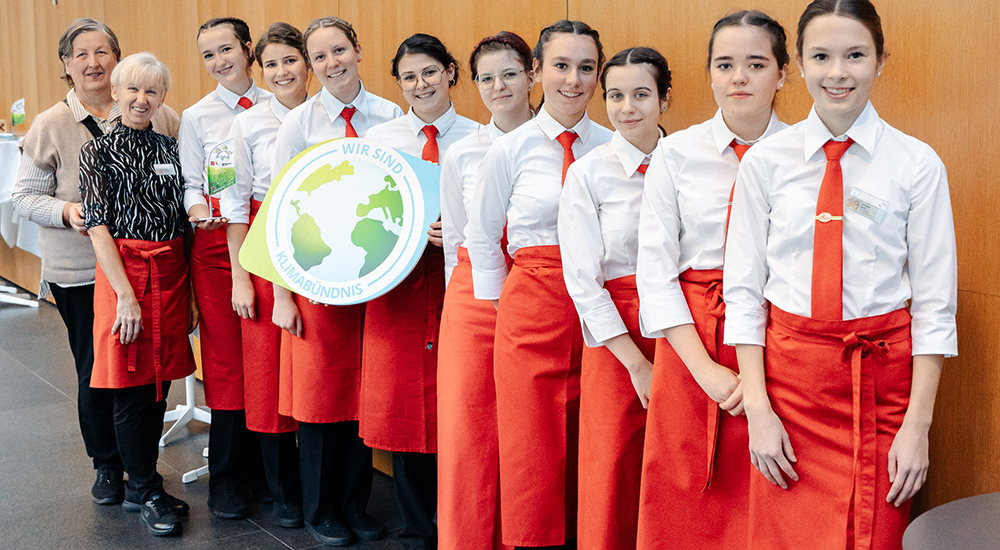 Das dreigängige, vegetarisch-vegane Menü wurde von Schülerinnen der Landwirtschaftlichen Lehranstalt Rotholz, Dietmar Fröhlich (Alpine Elements & United Against Waste) sowie Theresa Fessler (Initiative DoppelPlus) zubereitet. Der volle Saal freute sich über abwechslungsreiche und genussvolle Gerichte – von der Kürbis-Topinambur-suppe über eine deftige Tirol-Bowl bis zu Apfel-Haferschnitten.