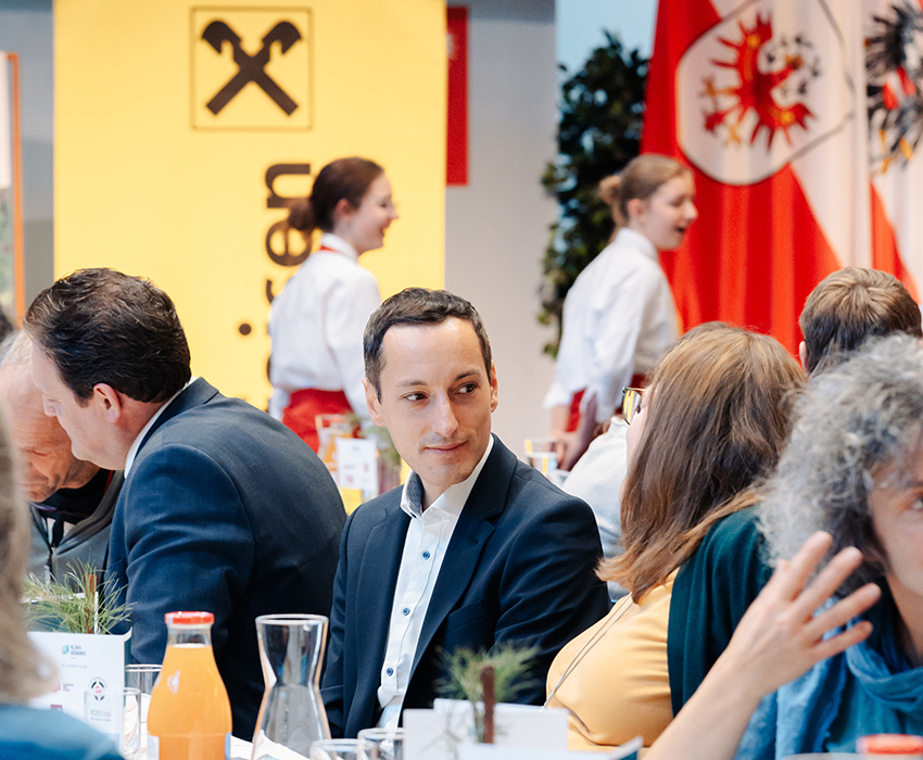 In der dritten Tischrede sprach Alexander Smith, Kundenbetreuer Institutionen bei der Raiffeisen-Landesbank Tirol AG, über die Rolle der Gemeinden als zentrale Treiber der Energie- und Klimawende. Ob Energiegemeinschaften, Nahwärmenetze oder Ladeinfrastruktur – viele Projekte seien ohne Partnerschaften nicht umsetzbar. „Was einer alleine nicht schafft, das vermögen viele.“